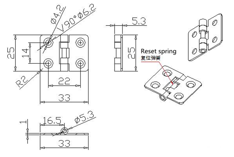 產(chǎn)品名稱: 熱銷不銹鋼304彈簧合頁25*33*1.0mm,小彈簧鉸鏈